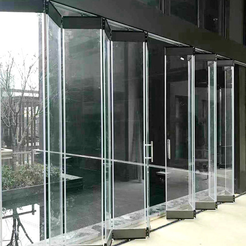 Porta in vetro prezzo basso finestre commerciali in alluminio Design Bifold porta da Garage in vetro senza telaio